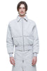 100% RECYCLED POLYESTER BOMBER JACKET WITH LAYERS INSPIRED BY HOCKEY GOALTENDING CHEST PROTECTOR